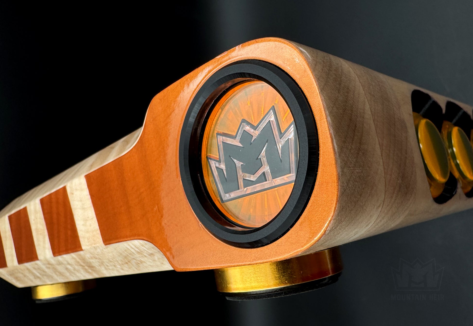 The "CITRIX" is a fully customized 1 of 1 original design by Mountain Heir in partnership with Foe Hammer. We use a handmade Foe Hammer Magnum maple wood frame with painted accents as the vessel for our hardware. You'll see a geometric maze of acrylic layers and accents for the top and bottom panels. The underbelly exposes the internals framed by an acrylic window. From top to bottom, inside and out, we really took an intentional approach to creating something unique and it's guaranteed to turn heads.