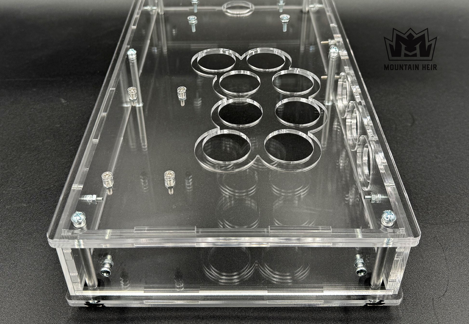 - Clear cover panels are clear 1/8" acrylic and wrap all sides/top & bottom of the enclosure.